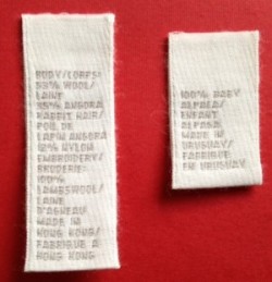 - Printed Cotton Labels (woven edge and 100% cotton): Minimum order is between 100 and 500 labels.